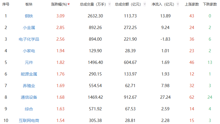 午盘点评:沪指涨1.04% 钢铁板块领涨